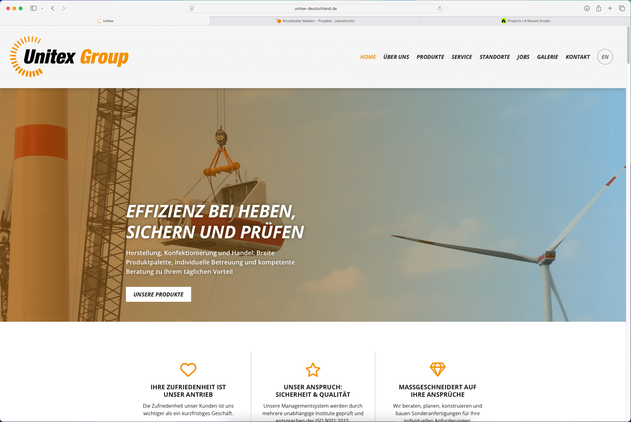 Mit dem neuen Webauftritt präsentiert sich Unitex Deutschland als zeitgemäß aufgestelltes Industrieunternehmen mit klarem Leistungsprofil. Ziel war es, das breite Portfolio an Produkten und Services rund um Hebe-, Sicherungs- und Prüftechnik übersichtlich und strukturiert darzustellen. Die Website dient als zentrale Informationsplattform für Kunden aus Industrie, Handwerk und Logistik und ermöglicht einen schnellen Zugang zu relevanten Themen, Leistungen und Standorten. Durch die klare Gliederung und sachliche Gestaltung wird die technische Expertise von Unitex unterstrichen und die digitale Kommunikation mit Kunden nachhaltig gestärkt.